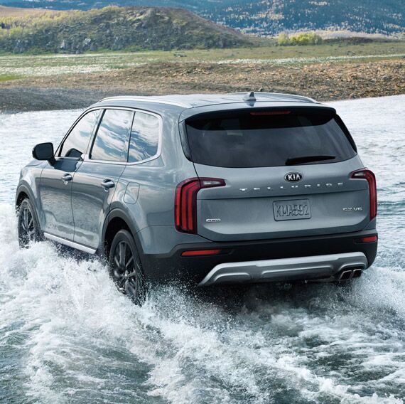 The Telluride’s 3.8L V6 engine pushes out 291 horsepower and 262 lb.-ft. of torque to master any road and power its standard Class III 5,000 lb. towing capability.